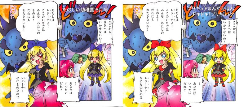 ট ইট র ふじい えふしゃーぷ たのしい幼稚園初登場時のレジーナは既に紫色だったこと プリキュアまんがえほん ドキドキ プリキュア2ではちゃんと色修正されていたこと プリキュアの知ってても知らなくてもいいムダ知識プリビア