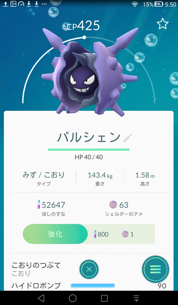 シェルダーのアメが揃ったのでパルシェンに進化させてみたよ ポケモンgoとニンテンドークラッシックミニ