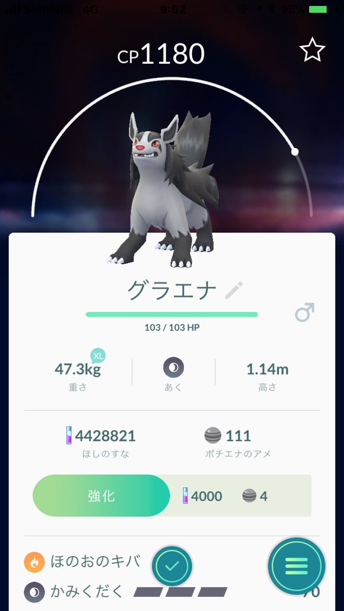 年4月26日 ゲーム, ポケモン ポケモンgoポチエナをグラエナに進化させてみた。 進化に必要なアメが集まったのでポチエナをグラエナに進化させてみることに。 進化に必要なアメは50個でした。ポチエナのステータス画面から進化をタッチします。. (漢字) グループで 行動していた 野生の 血が 残っているので 優れた トレーナー だけを リーダーと 認めて 命令に 従う。. ポケモンgo最新記事 ポケモンgo雑談&議論掲示板!初心者〜ガチ勢まで書き込み大歓迎! ポケモンgoジム殴り出しのターゲットは?!崩したトレーナーが割りを食う仕様変更希望.