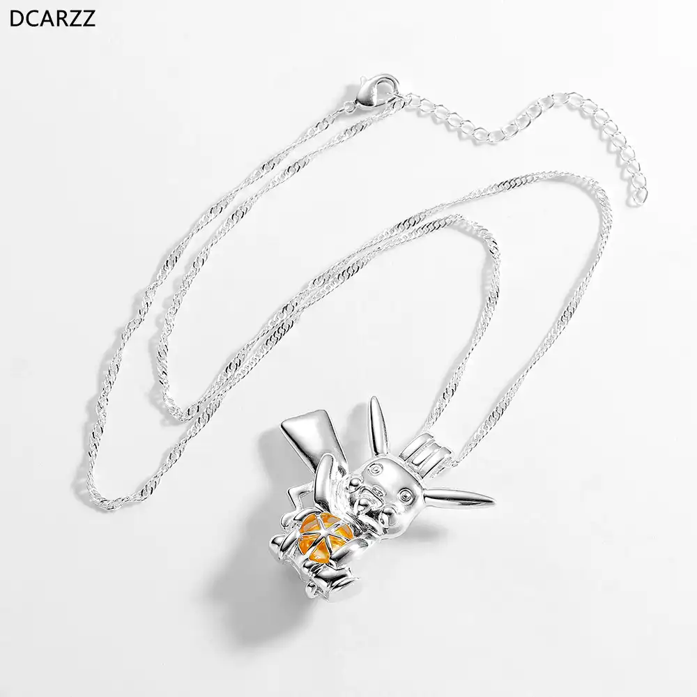 ポケモンピカチュウペンダントネックレスシルバーメッキパールケージネックレスロケット漫画 Diy パールビーズキッズジュエリー卸売 Aliexpress