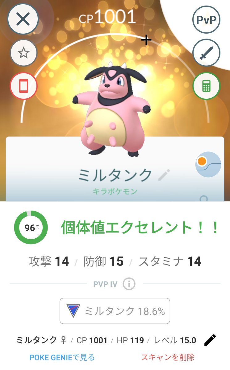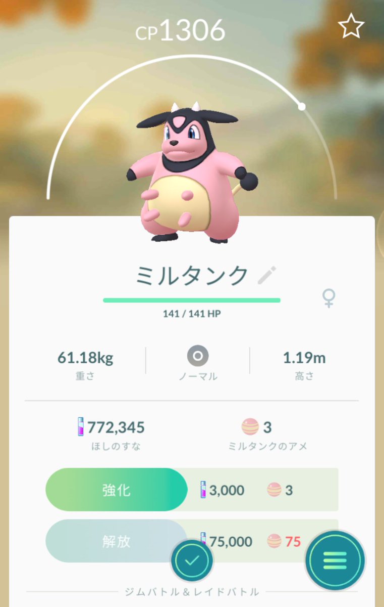 ポケモンgo 攻略日記357 ミルタンクのキラポケモン 27歳で札幌在住のゲーム大好きgirlのブログ