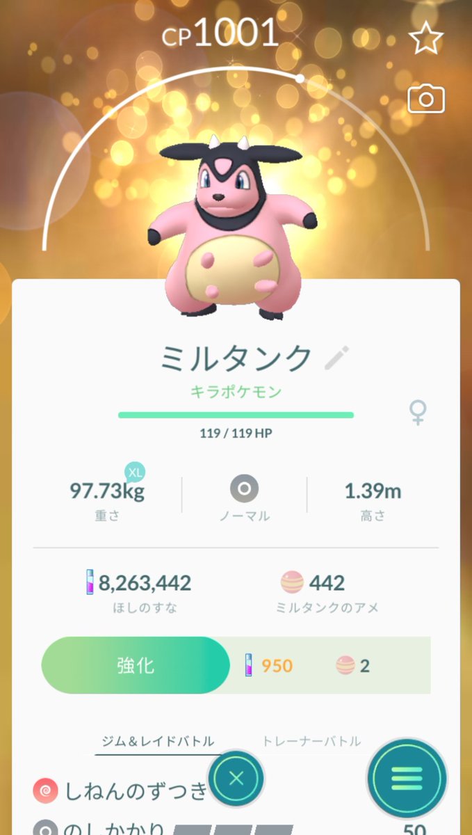 かっちゃん 8 8gofest横浜 على تويتر 昨日ポケモンgoでゲットしたキラポケモンその5 キラミルタンク 3匹目 6日前 1週間前 にゲットした ミルタンク と 5日前 6日前 にゲットした ミルタンク を交換したら キラミルタンク になりました